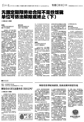 无固定期限劳动合同不是铁饭碗 单位可依法解除或终止 (下)