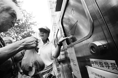 小李是东城区崇外街道崇东社区垃圾分类指导员,每天早6点到10点,晚4点到6点,他都拿着电子秤,佩戴着专门用来对接垃圾分类桶站上呼叫器的专用手表,第一时间到达按钮处指导居民分类处理垃圾,称重积分。