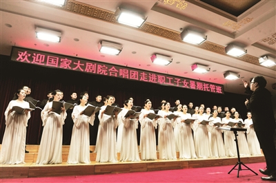 昨天下午,伴随着《歌声与微笑》《花仙子之歌》《天空之城》《我们的生活多么幸福》等一首首或欢快、或悠扬的歌声,一场以“深入生活、扎根人民——国家大剧院百场公益演出”为主题的志愿合唱专场演出走进职工子女暑期托管班。来自全市工会托管班的近300名师生及家长欣赏了整场演出。(相关报道详见第4版)