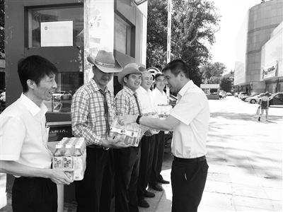 近日,当代商城领导前往停车场慰问了在酷热天气中坚守岗位的车场礼宾员,将解暑饮料、西瓜等送到员工的手中,同时叮嘱大家多饮水,注意健康。领导还提示管理人员合理调整高温时期的作息时间,科学安排室外作业轮换频次。员工们表示,会以最佳的精神状态投入到日常工作中,为顾客提供更加周到细致的服务。