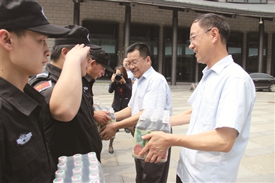 为进一步做好高温天气的防暑降温工作,区总工会精心策划、统一部署,深入到工作在户外、一线的执法人员、环卫职工、出租司机、工地农民工、工厂车间工人和重大活动安全保障职工等职工会员中,送去贴心的慰问和祝福。