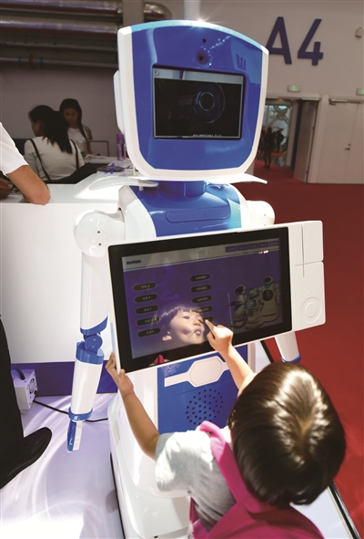 身体不舒服,却不知该去哪个诊室看病,这种问题对于老年人来说非常常见。展会上,一位老年观众正在与一台人型机器人交流,老人说出病情,机器人自动回复分类,精确告诉老人应该去哪个诊室。据了解,这是最新的导医导诊类机器人,可为患者提供导航、导医、咨询等服务,支持声音、图像等多种交互方式,实现对患者的合理分流,提高医疗服务质量。