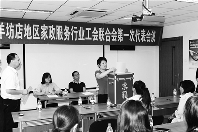 近日,海淀区羊坊店地区家政服务行业工会联合会第一次代表大会召开,宣告羊坊店地区家政服务行业工会联合会正式成立。会上,街道总工会就家政服务行业工会工作提出要求。希望工会组织立足服务职工、服务社会,重点做好基层工会组织建设、加强家政服务员业务培训,为职工办好事、办实事。