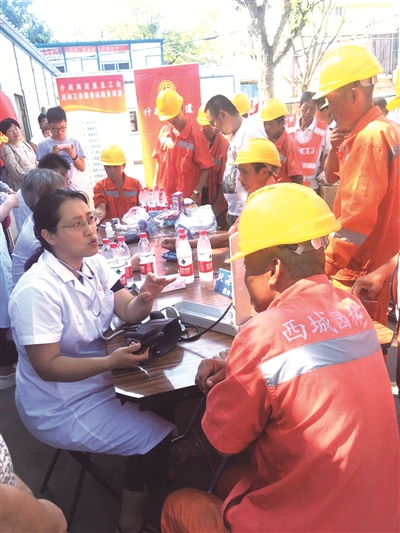 今年上半年,流动工会服务站开展了送医疗、送宣传进工地活动,受到职工好评。其中,流动服务站送医疗进工地的活动受到职工的大力欢迎。街道总工会联合北海医院的医生一起走进工地,为工地的一线农民工进行义诊。现场诊脉、测量血压和血糖等,保障了农民工的身体健康。同时还送去了清凉,包括菊花茶、绿茶、清凉帽、雨衣、凉席等在内的防暑降温物品。