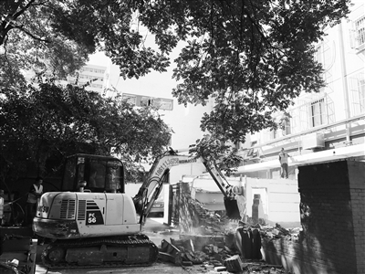 为了彻底杜绝一层商户扰民问题,海淀街道计划将东侧围墙拆除进行绿化,并沿原围墙设置栏杆拆墙透绿,还老百姓安静、整洁的生活环境。白莹 摄