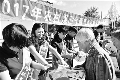 当天不到早晨九点,燃气集团怀柔有限公司的职工们就在村里梅海戏楼前的露天广场上准备好各种普及安全用气知识的宣传页和小礼品,为村民进行耐心解答。村民也排起长队领取燃气安全用户手册等。