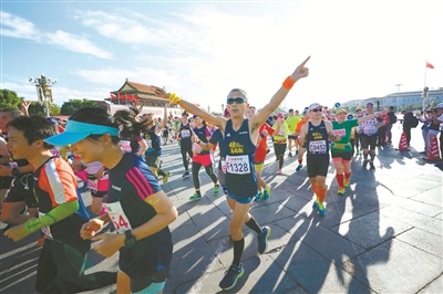 9月17日,史上报名人数最多的2017年北京马拉松赛落下帷幕。来自摩洛哥的博纳瑟爆冷收获男子组冠军,成为北马37年历史上首个夺冠的摩洛哥人。女子组比赛中,贝耶妮后来居上延续了埃塞俄比亚选手的夺冠势头,中国选手何引丽获得第五名。本届北京马拉松仍然只设全程马拉松项目,参赛规模为3万人。赛前的报名人数再创新高,达到98687人,比去年增长约48%。图为参赛选手在比赛中。(相关报道详见第13版) 新华社发