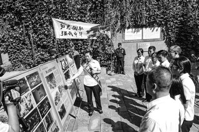 昨天上午,为纪念“九一八”事变爆发86周年,北京市公园管理中心在市级爱国主义教育基地天坛公园神乐署“侵华日军细菌部队遗址”举办纪念活动,各大市属公园职工代表在现场感受历史遗迹,传承爱国情怀。本报记者 邱勇 摄影报道