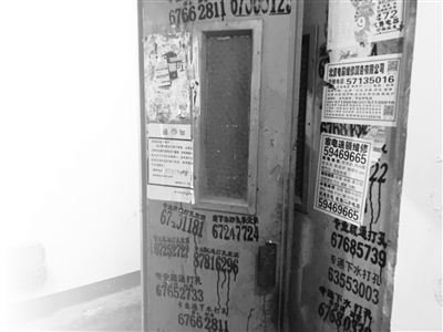 “这新刷的墙才几年,又被广告弄成个大花脸。”每次进出楼道,家住南三环的王静都会这么叨唠几句。面对居住的楼道环境,她的总结是脏乱差。“就拿这楼道里的墙来举例,贴的写的都是广告,还有人踢的脚印。看着心里就添堵。”