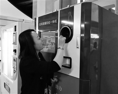 “只要把这个瓶子的条形码朝上,放入投放口,然后输入自己的手机号码,就能获得返利……”9月27日,在朝阳区酒仙桥街道建会企业蓝色光标传播集团的办公区,工作人员正在向前来参观的辖区其他企业负责人介绍空矿泉水瓶回收机。