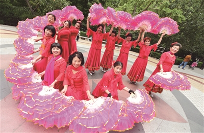 昨天,西城区新街口街道冠英园社区的彩云追月舞蹈队,在街心公园内排练新创作的舞蹈《祝福祖国》,计划在国庆节期间为邻居们表演。