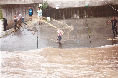 每年农历七、八月是观赏钱塘江大潮的最佳时机。最近在浙江省杭州市钱塘江边,每天都有众多慕名前来观潮的游客。除了游客,还有一些人也守着潮水。他们等潮水过去后,便翻越围栏,下到江边撒网捕鱼。而有一些前来观潮的游客也会围观他们捕鱼。