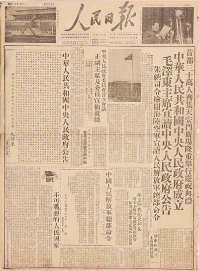岁月悠悠,六十八载仿若弹指一挥间。翻开1949年10月2日的《人民日报》,68年前的开国大典,栩栩于眼前。记录“开国大典”这一历史盛事的报纸已经泛黄,文字与照片都已变得模糊,然而透过这份珍贵的报纸,我们仍然可以感受到开国大典那一伟大历史时刻的庄严与凝重,可以感受到万众欢腾的盛大场面。