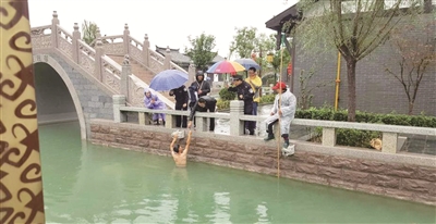 10月4日上午,陕西渭南,一名女游客不慎将手机掉入河道内。女游客立即向景区工作人员求助,工作人员打捞了十五分钟没打捞上来。女游客很着急,不断地告诉工作人员,她的手机对她很重要,尤其是那张手机卡以及手机里面的资料。景区工作人员雷少鹏脱掉衣物,跳进河道内,潜水三次最终找回手机。