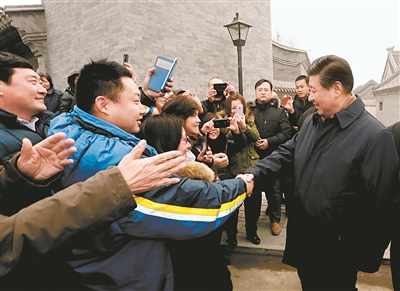 在雨儿胡同,总书记沿着弯曲狭窄的通道,走进胡同人家,嘘寒问暖,听罢居民希望改善现在生活环境,“住了半辈子不想拆走”的想法,总书记感言,“我能体会大家的心情,难舍乡情,留住乡愁留住根。”细察市情、实探民生,总书记对首都工作的重视关切,源自一位大国领袖的战略思考,也饱含一位“老北京”的深厚情怀。
