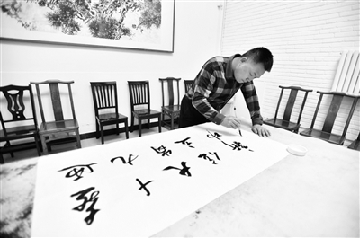 昨天,由通州区总工会主办的“喜迎十九大——大美副中心”通州职工书画摄影展在通州台湖书画院开幕。广大书画摄影爱好者创作出一幅幅精彩画卷,表现了通州翻天覆地的巨变。开幕式后,获奖者郝鸿翔代表广大职工当场挥毫创作“喜迎十九大 岗位立新功”书法作品,表达了通州职工对十九大即将召开的喜悦心情。