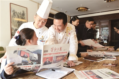 | 徽商故里酒店的职工们自发组成小组,学习习近平总书记在十九大上作的报告。 |