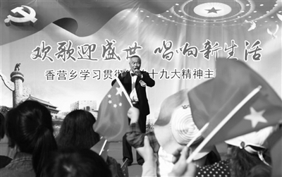 昨天,延庆区香营乡组织开展了“欢歌迎盛世 唱响新生活”香营乡十九大精神专题巡回演出。下一步将深入各村巡演,通过歌曲、舞蹈、小品、三句半、百姓宣讲等老百姓喜闻乐见的形式,把党的十九大精神送到最基层。本报记者 陈艺 摄影报道
