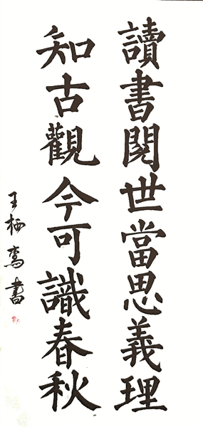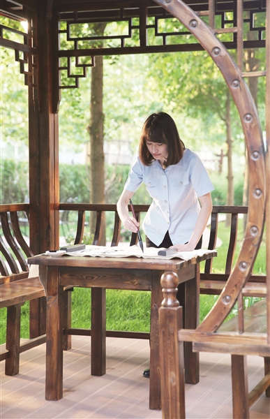 现在王栖鸾还在坚持练字,每当在工作中遇到压力,或者在生活中碰上难过的沟坎,她都会将宣纸展开,将毛笔蘸上墨汁写几个字,心便静了下来。“书法与我不仅是益友也是良师,我每次的书写都能感受到自己的成长。现在很多人不重视书写。然而,对我而言,习字已经成为我生活中不可或缺的部分,也是我坦然面对生活、保持乐观心态的宝贵财富。”
