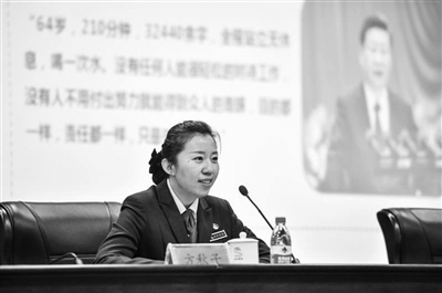 “在这7天里,简洁大方的会场布置、房间用品的环保朴实、会场纪律的严格规范给我留下深深的印象,让我感受到在内容上做 ‘加法’,在形式上做‘减法’和中国共产党艰苦朴素的优良作风和勤俭节约的优良传统。”回忆起现场聆听十九大报告的感受,方秋子仍满怀敬佩,“当听到习总书记说‘中国特色社会主义进入新时代,我国社会主要矛盾已经转化为人民日益增长的美好生活需要和不平衡不充分的发展之间的矛盾’时,内心特别感动、温暖。这一判断充分说明党的关注点始终聚焦在人民。”