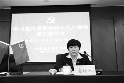10月27日,十九大代表、北京发行集团所属北京图书大厦一层销售部经理杨新媛为集团120人进行宣讲。