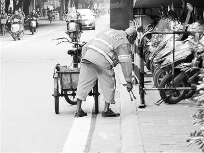 这条街茂林老汉一天不知清扫多少次,刚来当清洁工时,那个男人模样的女人告诉他,不管他一天扫多少次,只要她发现路面上有垃圾的那刻起,十分钟之内还没被清理,他就会被罚款 。