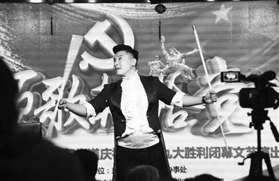 《站在草原望北京》、《红歌连奏》、《北京颂歌》……10月31日,东直门街道和京演集团共同举办“颂歌献给党”活动,庆祝党的十九大胜利闭幕。社区居民、辖区职工共同观看演出。现场,当魔术师用一块桌布将桌子整体悬浮空中,现场的观众不约而同发出了惊叹声。