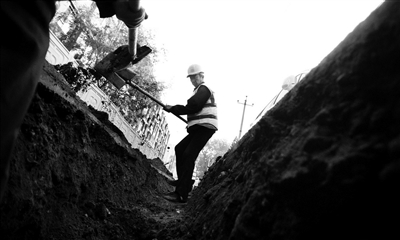 东城区东直门牌铜厂子胡同,700米长的街道,抬头看,近百条架空线成捆挂在空中。一个月后,这些架空线将全部入地,抬头再也看不到私搭乱挂的天线。东城区百街千巷环境整治提升工作指挥部办公室副主任王涛介绍,明年年底前,东城区1005条胡同将全部实现通信架空线入地,拔杆撤线。本报记者 边磊 于佳 摄影报道