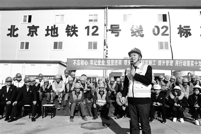 11月4日,十九大代表、全国劳模、中铁一局高级技师白芝勇回到基层,来到北京地铁12号线02标项目,与地铁建设工友交流互动,宣讲十九大精神。(11月6日人民网)
