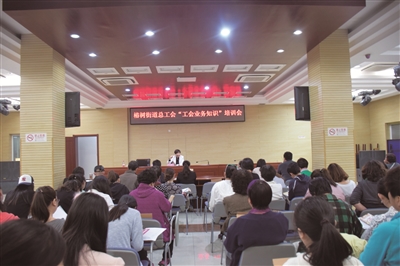 为能在椿树建立一支业务熟悉、政策清楚的高素质工会干部队伍,今年4月份,椿树街道总工会组织相关工会干部、社区、基层工会主席140余人参加“工会业务知识综合培训”。此次培训内容丰富、涉猎面广,既有京工发[2016]24号文的解读,又有职工互助保险的办理、APP推广和有关财务报销日常规范等业务的指导,真正实现培训内容必有用、培训效果显成效,培训队伍见真章。