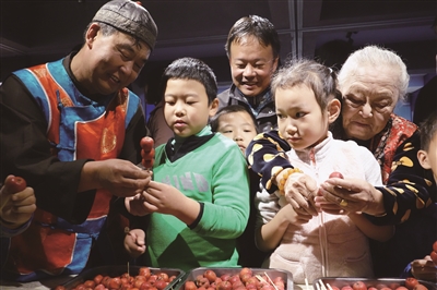 “蜜儿多,冰糖葫芦哎,冰糖儿多呀哎,葫芦儿,冰糖……”上午10点,角楼图书馆一层主题文化活动区传出一阵阵吆喝声,制作冰糖葫芦的主题活动拉开序幕。