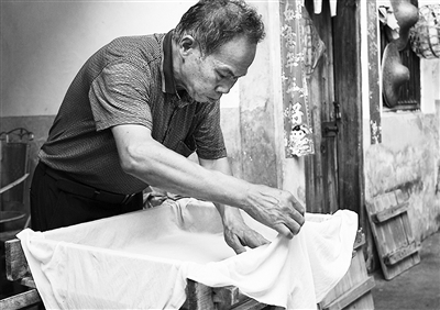 磨豆腐是很辛苦的事,前一天傍晚就要开始泡豆子,等到三更半夜,父亲就要起床开始拉磨。豆子磨好,回锅煮沸,再压制成型,常常已是天明。饭也顾不上吃,父亲就会挑起两只装豆腐的水桶,高声吆喝“卖豆腐啦”,印象中,他似乎只会吆喝这么一句。