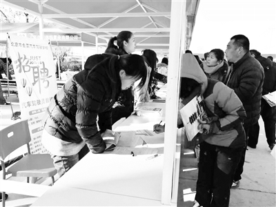 昨天上午9点,通州区产业调整退出企业职工转岗就业专场招聘会在通州区宋庄镇徐尹路徐辛庄举办。虽然寒风凛冽,但挡不住前来的求职者的热情。