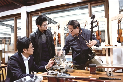临近中午,职工们依然围着刘正辉,听他讲,看他做。临别时刘正辉随手拿起一把京胡,演奏一曲《贵妃醉酒》优美的旋律让职工们听的如醉如痴。刘正辉对职工们说:“好听的乐曲离不开表演者的演奏水平,但是,没有好的乐器,再棒的演奏家也拉不出美妙的旋律。这就需要我们大家共同努力,制作出高水准的民族乐器来。”