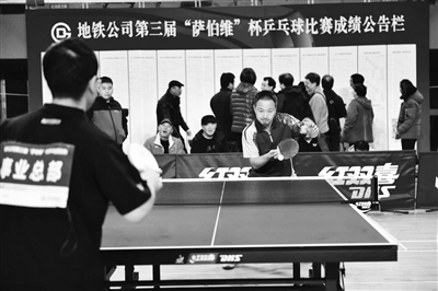 11月24日,经过3天紧张激烈的角逐,由北京地铁公司主办、运营四分公司承办的第三届“萨伯维”杯乒乓球比赛落下帷幕。据了解,此次活动为吸引更多的员工参与,组委会首次设立中年组,并首次要求地铁安检员和平安地铁志愿者两支队伍加入到公司文体活动中。本报记者 彭程 摄影报道