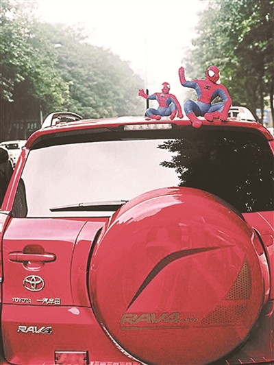 “车顶玩偶”样式新颖可爱,多种多样;且价格低廉,安装方便,吸引眼球,故受到不少车主的青睐,成为很多车主的“新时尚”。