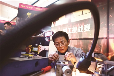 在所有工匠中,钳工是一个特殊的工种,他们是一群整日和“毫米”打交道的人。贺伯原家里三代行医,原本爸爸希望他能继承衣钵,但从小动手能力极强的他选择了钳工这个职业。贺伯原22岁入行,今年正好是他入行的第30年。他是此次“挑战大工匠”钳工组比赛中年龄最大的一位,也是从业时间最长的一位。