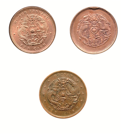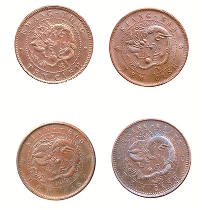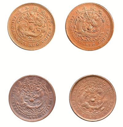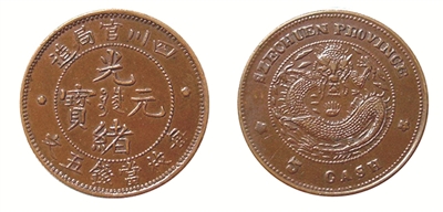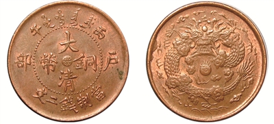 铜元铸造之初,各省所铸铜元正面文字均为“光绪元宝”,并标注铸造省份,背面图案则多为不同形态的龙。