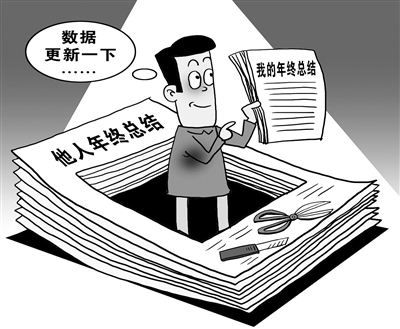 又到年终岁末,一份高质量的工作总结不可缺少。然而,翻开一些政府部门的总结,多半是熟悉的套话,穿靴戴帽、以空对空的也为数不少。工作总结言之无物、玩“套路”,是形式主义的表现,应摒弃。(12月18日新华网)□朱慧卿