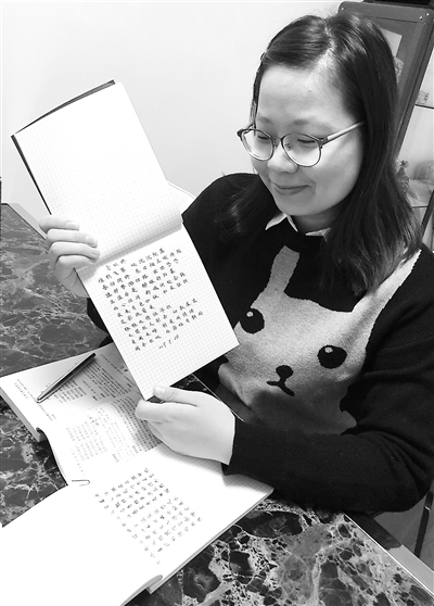 “用钢笔写古诗词,给我每天的生活增添了一种难以言传的美感,让我的心慢慢静了下来,能更从容面对生活工作中的风风雨雨,这让我很欢喜。我会一直坚持下去,也希望有更多人可以一起分享古诗词的美,硬笔书法的美。”安昳对记者说。
