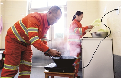 从2009年起,老包夫妇就从老家来到北京,在东城区环卫中心做保洁员。“8年来,让我们感动的事情太多了。”包华成接着说:“北京人淳朴热情,对我们清洁工人也很尊重,还有些市民经常念挂我们。在新公厕里,单位还特别地给安排了休息间,水电热气都齐全,我们外地工人觉得在北京生活得很温暖幸福。”