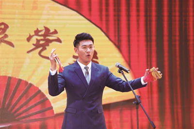 本次演出是由区总工会职工艺术团为弘扬十九大精神量身打造的成果展示,演出分为《牢记新使命》《逐梦新征程》两个篇章,职工艺术团团员们自编自导的节目精彩纷呈,内容涵盖了歌曲、快板、古筝、诗朗诵、舞蹈、小品等,凝集了开发区广大职工的智慧和才能。以劳模宣讲为序曲,以十九大精神作为时代主旋律。来自二中的邱子阳老师,快板《一心跟党走》完美演绎出了职工的心声。温婉的古筝曲《荷塘月色》拨动在场观众的心弦,六位来自职工夜校美丽姑娘用流畅娴熟的弹奏,向人们展示了传统文化韵味的同时,也为职工夜校古筝课程提交了一份令人满意的答卷。