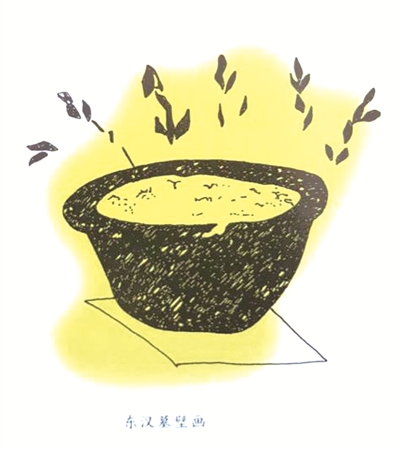 先民开始将自然界的花草引入室内,融入生活。河北望都东汉墓内的壁画上,绘有一方几架上放一陶质圆盆,盆内插有一排长度、间距相等的六枝小红花的图案。这种将花材、容器、几架三位一体的形式,构成了插花完整的雏形(见下图)。东汉(25年—220年)末年,佛教传入中国,开始有了佛事供花,插花便成了佛事六种供养物之一。魏至南北朝时期(220年—589年)政局动荡﹑文人雅士隐居避祸,自娱自乐,出现了文人插花。如春天时节,文人将在山野中采摘的杏花枝放在铜盘中,置于厅堂款待宾客。