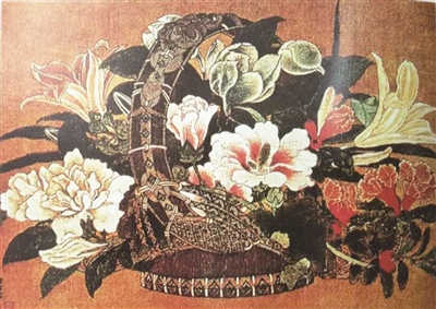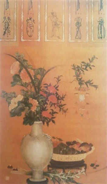 清中叶以前政局稳定,经济繁荣,花市繁盛,此时写景插花开始流行,也有带根的组合盆栽,同时也出现了谐音插花﹑蔬果插花和季相插花。丁亮先所绘的四季花篮图,花篮精美别致,插四季有代表性的花材形成不同的季相特征。如春季花篮,插有牡丹、碧桃和紫玉兰,给人以春色满园,万紫千红,繁花似锦的感受。夏季花篮,插有荷花、石榴、萱草,题为“莲花莲叶满篮筐,几朵娇姿嫩六郎”,娇姿宛如六月的清风,清爽宜人。秋季花篮,插有芙蓉、菊花、秋葵,题为“几朵秋光分晓色,数枝月影带斜阳”,秋花不让春花,虽至斜阳,仍争芳斗艳,引人深思。冬季花篮,插有火红的山茶,冻蕊含香的腊梅,冰肌玉质的水仙,共同造出了一幅芳菲欢跃的闹春图。