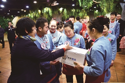 “我来北京的时间虽然不长,但我感受到了北京的温暖,感受到了工会的关怀。今年春节,我不打算回家了,继续为大家服务。”接过工会领导送来的一箱水果,来自内蒙古乌兰察布市的23岁服务员李海洋激动地说。2017年12月29日上午,北京市总工会、丰台区总工会一行来到西贝莜面村六里桥店,对远离家乡的在京务工人员进行慰问。这也是北京总工会“暖在京城”“两节”送温暖系列活动之一。