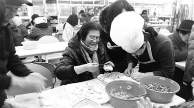 来参加“饺子宴”的社区居民储阿姨告诉记者,她平日里经常到“社区之家”的食堂里用餐。“现在食堂对社区居民开放了,尤其给我们老年人带来很大方便。我从家走10分钟左右就能到食堂,在家不方便做饭时就和老伴儿到这里用饭卡买饭,在这儿吃或者带回家都可以。”她说,“食堂炒菜品种丰富价格也合算,主食就有米饭、烙饼、馒头、饺子等等,我买半份红烧茄子,4块钱就够了,荤菜10多元钱就能买到,比在外面便宜多了。”