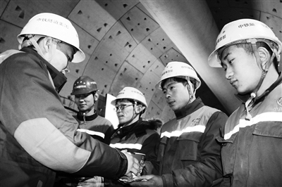 新年到来之际,中铁隧道局京沈客专京冀段十三标项目部的工会主席和项目安全总监,深夜来到望京隧道的盾构隧道,为那里的工人送去方便面、面包、八宝粥等,让他们奋战在一线的同时感受项目部的关怀。此外,领导还向工人叮嘱了安全注意事项。