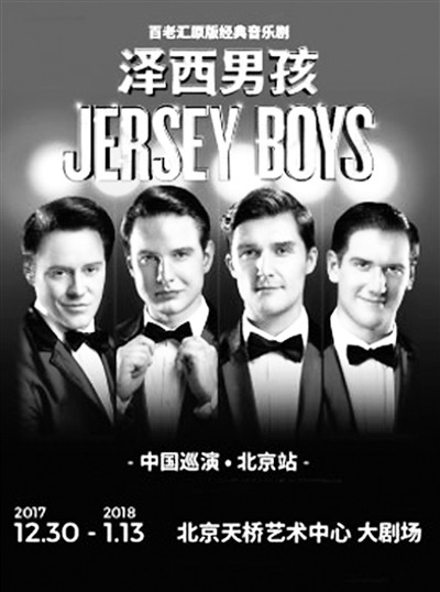 《泽西男孩》是一部根据上世纪60年代著名演唱人法兰基·维力与摇滚乐队“四季乐队”的真实成名经历改编而成的百老汇音乐剧,演绎的是来自新泽西州的四个男孩从火车下错了站,努力工作在音乐上最终成为了美国流行音乐的主导,开始编写他们自己风格的音乐,最终销量达1亿7千5百万张的优异成绩。依靠清晰的春夏秋冬四季的叙事脉络,以及像《Can Not Take My Eyes Off You》这样能够引发大合唱的金曲穿插其中,《泽西男孩》在2004年试演取得巨大成功,当天创下了40万票房收入的纪录,随即在百老汇开幕,再度引发轰动,并在之后荣获托尼奖四项大奖,奠定了这部巨作在戏剧界的地位。