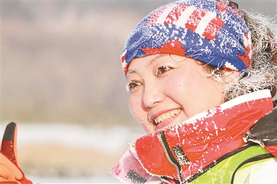 1月7日,黑龙江省伊春市,全国趣味冰雪创意成果三项赛的雪地徒步穿越赛,在伊春市九峰山景区进行。参赛的一百余名选手,在-20℃的气温下,徒步穿越白雪皑皑的九峰山,脸上都挂满哈气结成的白霜。