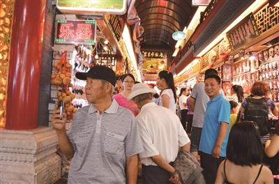 大栅栏几个街巷到底有多少家老字号?漫步其中,数着数着大小不一、书体各异的招牌名字,不一会儿就在光影里数不清了。一家家老字号,经历了跌宕起伏、兴衰荣辱的岁月,至今依然温润怡人。商业是其一,文化更是其一。